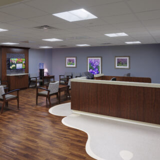 Like many healthcare settings, resilient flooring is reached for first, but there are many types of flooring used in senior living facilities. We still see a lot of carpet being used in independent living apartments, and in public areas in assisted living. The warm aesthetic, underfoot comfort, and acoustic benefits are still in demand. Carpet tile is the most common and has the benefit of being easier to install than broadloom with regard to staging the job – spaces don’t have to be completely emptied of furniture. It’s also easy to replace a few tiles if they get damaged or worn. “Solution Dyed” products have color throughout the fibers so it withstands staining, soiling, and fading.