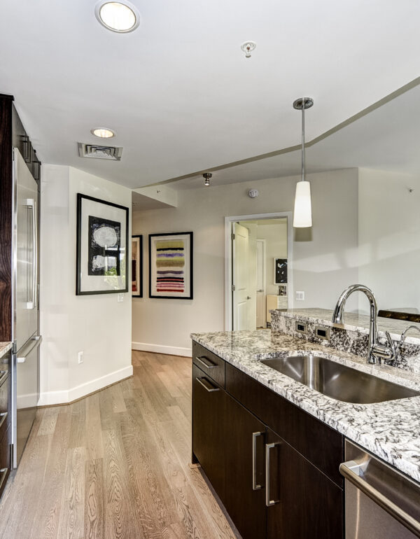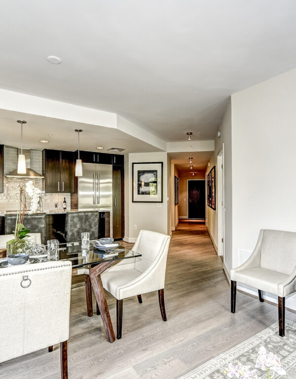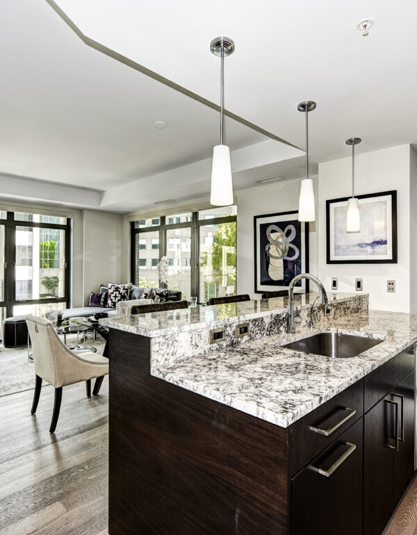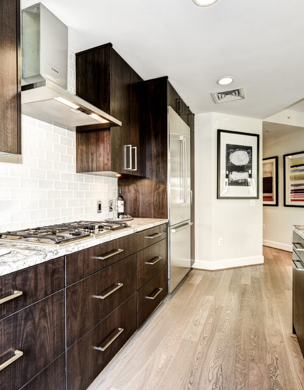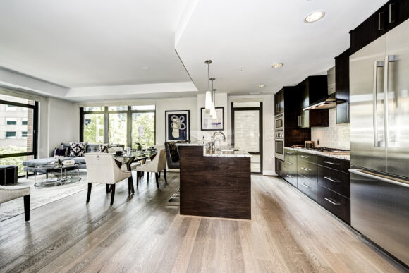 Downtown Bethesda has become a hub for high end housing options that are pushing the upper price points for the greater D.C. area.  In 2008, PN Hoffman and Forrest Perkins were challenged to bring the ultimate in luxury design to this sophisticated community.  Comprised of two residential towers, The Darcy’s architectural design optimizes views for as many units as possible, some showcasing downtown Washington in the distance and others overlooking downtown Bethesda.  Each condominium in The Darcy has an open floor plan with nine-foot-high ceilings, floor-to-ceiling windows and Kahrs hardwood floors.