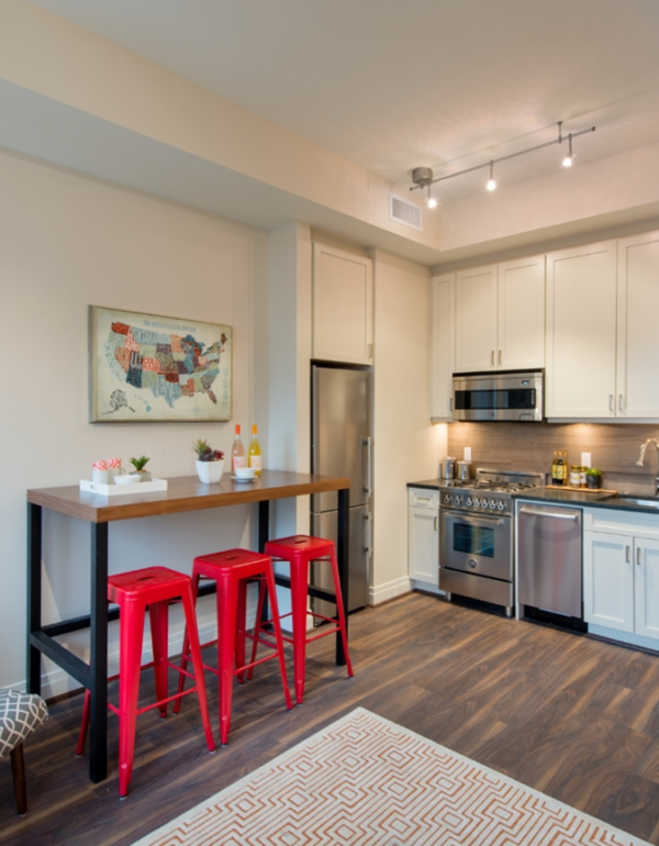 This pre-war stunner at 14th and R NW has quite a story to tell. 51 boutique apartments beautifully arranged within the historical context of a 1920’s era Studebaker car dealership turned homeless shelter, and three 1880’s townhouses. In designing The Mission Apartments, Eric Colbert & Associates seamlessly married contemporary style and the industrial rustic vibe to create the ultimate luxury community. The urban wood look of Kaindl Coastal creates the perfect pallet for residents to show off their own interior design creativity. Durable and Greenguard Gold certified, these planks are an easy choice for any multifamily project.