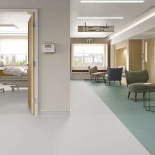 The next generation of Vinyl Safety Floor was more desirable from a design point of view, bringing it into more common commercial spaces like health care. By imbedding slip resistant particles like aluminum oxide that are almost invisible to the naked eye, safety floors were developed with a clear wear layer over printed visuals such as wood or stone looks. The floors have a more decorative appearance while maintaining the sustained slip resistance for underfoot safety. Manufacturers also developed products with special surface textures that can be used in barefoot areas like showers and around pools. Most recently, the Safety floor market has taken a step even further with the inclusion of colored quartz particles that are closely matched to the base color. These floors have the look of a smooth vinyl, with wide ranges of colors that are highly decorative but easy to clean and still very slip resistant when wet.
