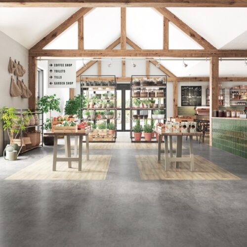 The traditional looking safety floor with carborundum is still available and widely used. I think that sometimes their visible appearance calls attention to the floor in wet areas and may provide an added level of reassurance to the public. However, with the newer technology and more decorative visuals, the old objection to their appearance is eliminated, so safety floors can be used in virtually any commercial or residential space and with the same performance. With so much emphasis on slip and fall protection in facilities such as health care facilities, schools and retail stores, the new products allow for great looking, cleanable floors that still are not as slippery as standard resilient floors when wet.